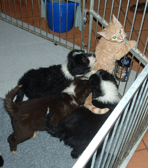 Was ist ein graubrauner Tag? Ich habe lieber keine Bilder davon gemacht, aber ich würde mir wünschen, dass jemand, der Neuzüchter werden möchte, hier an einem solchen Tag Praktikum macht: Heute haben alle anderen Durchfall. Allso: - Nase zu und Ställchen putzen. - Derweil sind die Zwerge auf der feuchten Terasse. - Zwerge wieder reinholen. - Jeden Zwerg über einem Wasser mit Welpenshampoolauge waschen, je nach Bedarf nur Bauch und Füße oder auch mehr, und dann liebevoll abtrocknen. - Nicht vergessen dabei ein gutes Wort zu sagen! - Die Füße der großen Hunde nach dem Spaziergang abtrocknen. - Die Terrasse kärchern. - Bälle, Sandkasten und das andere Spielzeug reinigen.