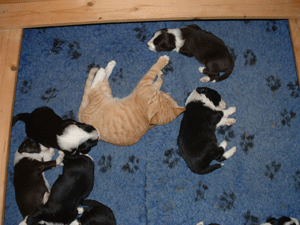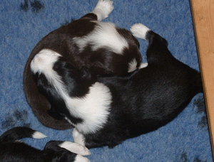 Kennen Sie die Geschichte vom faulen Wanja? Dieser vielversprechende russische Knabe entschied sich eines Tages, nicht all die spannenden Abenteuer abzuhaken, die sich die stolzen Eltern für ihn ausgedacht hatten. Nein, er legte sich gemütlich auf den schönen warmen Ofen. Dort schnarchte er gemächlich vor sich hin. Sicherlich können Sie sich die Verzweiflung der armen Eltern vorstellen. So ähnlich geht es auch mir. Da haben wir nun diese wunderbaren Welpen, ich habe ein wenig Zeit und sitze an der Kiste und möchte so gerne was mit den kleinen Zwergen anstellen: Ein bisschen "Sitz" üben, mal mit den ersten Klicker-Übungen anfangen und die Lütten knuffeln und schnuddeln, man könnte auch schon mal auf die Begleithundeprüfung vorbereiten. Und was tun die? Schlafen, schlafen, schlafen.