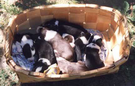 | Nun begannen die Sorgen: Wenn nun die dicken Gräten stecken blieben? - Wenn der fette Fisch für Koliken oder so was sorgen würde? - Wenn nun die Welpen....? Und neben diesen Sorgen das Wissen um den Blick, den ich vom Tierarzt ernten würde. Der hat nämlich einen Beardie, der nicht klaut, und schaut dann mit diesem vorwurfsvollen Wie-konnte-das-nur-wieder-passieren-Blick. Glück gehabt: wenige Tage später kamen ohne Komplikationen wunderschöne Welpen. Wir glauben heute die brauchten das gute Fischöl.