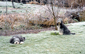 | Heute ist herrlichstes Beardie-Wetter. Kalt und frostig. Die Bilder habe ich gemacht, nachdem ich Finn und Fine aufgefordert hatte ins Haus zu kommen. Meine Worte waren eindeutig! Die Reaktion der beiden doch auch, oder?Den Welpen war es allerdings draußen schnell zu kalt. Sie können die Kleinen im Welpenkalender betrachten.