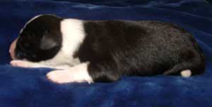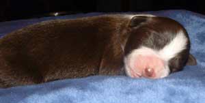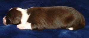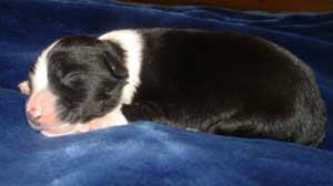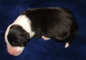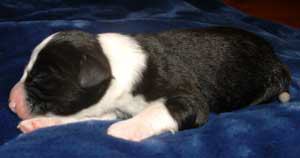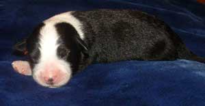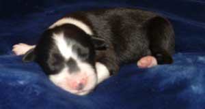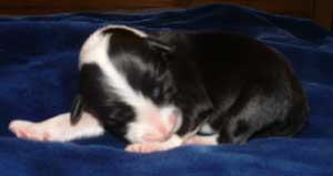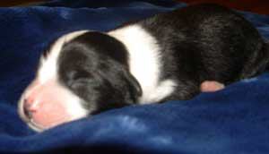 | Am 26.11.05 sollten sie kommen, unsere Kleinen. Natürlich baut man die Wurfkiste schon eine Woche vorher auf, aber man hofft doch, dass die Babys noch gut verpackt in Mamas Bauch bleiben. So wie auch ihre Mutter hat sich Fine aber entschieden, die Welpen nicht erst am Samstag, sondern schon am Montag zu bekommen. Ich hatte mir ja fest vorgenommen, dass die Babys nachts kommen und auf keinen Fall vormittags, wenn ich in der Schule bin. Fine hat in der Nacht von Sonntag auf Montag lieber bei mir im Arm gelegen und dann den ersten Welpen bekommen als ich gerade aus dem Haus war. Armer Göttergatte, aber er hatte gute Helfer: die Versorgung der ersten beiden Welpen hat Uroma Paula übernommen, für die nächsten zwei bin ich noch mal schnell nach Hause geflitzt und dann hat Doris Ohsenbrügge den Hebammenjob übernommen. Eigentlich ging alles gut und reibungslos, nur die kleine Holly hat Doris und Roland in Atem gehalten, weil sie nämlich zunächst mit dem Atmen Schwierigkeiten hatte. Gute Pflege von Mutter und menschlichen Helfern haben sie aber dann doch schnell ins Leben geschuppst. Und jetzt hat Doris erst mal die Patenschaft für die KLeine übernommen.