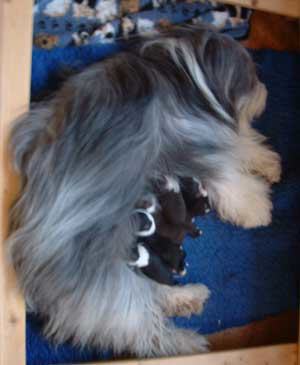 | Als ich die Welpen heute morgen von der Nacht- in die Tagkiste ( ja, sowas gibt es!) getragen habe, konnte ich einen deutlichen Unterschied zu den ersten Tagen feststellen: Zuerst waren es zarte, eher längliche kleine Körper. Es bestand kein Grund zur Sorge, denn alle Welpen zeigten von Anfang an intensive Körperspannung und festen Lebenswillen. Heute morgen waren sie plötzlich kugeliger, runde Bäuchlein schmeicheln jetzt der Handfläche. Können Sie jetzt verstehen, was ich damit meine, wenn ich sage, dass Welpen wie schöne Rindsrouladen sein müssen?Heute, zwei Tage vor dem 63.Tag, haben sie Gewichte zwischen 320gr und knapp 400gr. Das sind die Gewichte, die unsere Welpen sonst meist bei der Geburt haben.