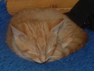 Tom hatte auch Besuch. Heute wollte Olafs Muter Welpen gucken und der arme Olaf (7) musste mit. Ein Blick in die Kiste reichte. Sein trockener Kommentar war: "Die sehen genauso aus wie letzes Jahr." Aber dann hat er glücklicherweise Tom entdeckt und die kleinen Jungs haben sich miteinander vergnügt. Wie man sieht, hat das sogar Tom ermüdet.