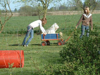 | und hier mit ihren Menschenfreundinnen. Rabea, Laura und Lisa spielen und knuddeln manchmal mit ihr und bringen ihr, wie man hier sieht, viele tolle Sachen bei: