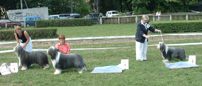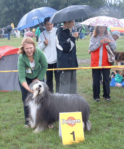 | Das CACIB bei der internationalen Schau und bester Rüde und beste Hündin bei der Beardie Schau gingen jeweils an die Gewinner der (großen!) Championklassen. Ich fand diese Entscheidungen jeweils gut nachvollziehbar und war stolz darauf, dass meine beiden mit diesen wirklich tollen Hunden jeweils um die Titel laufen dürften und die Entscheidungen der Richter alle drei Male erst nach langem Begutachten gefällt wurden.
