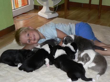 Von Connor gibt es Kinder in den Zuchtstätten "Joybringer", "Ram and Taurus" und "Shanti's". Als blauer Rüde vererbt er natürlich alle vier Farben.