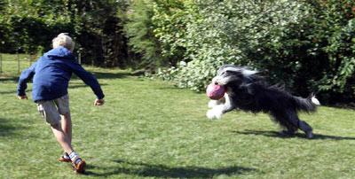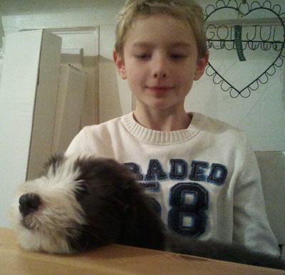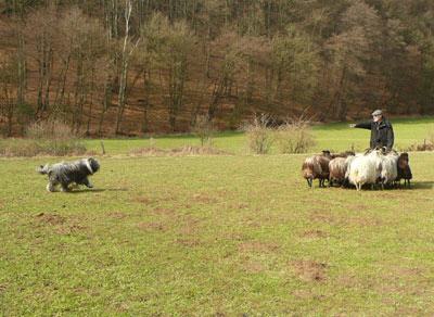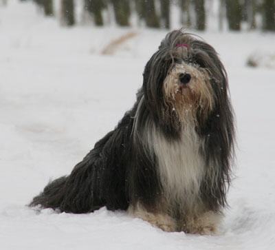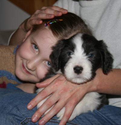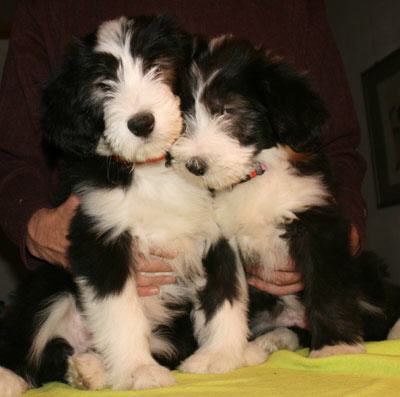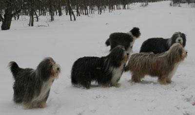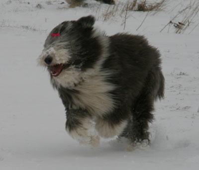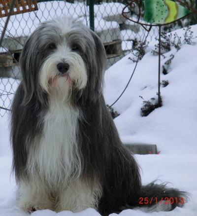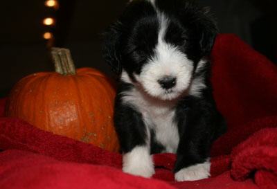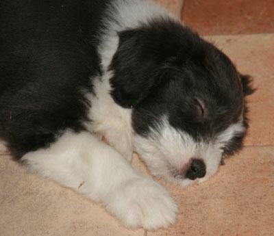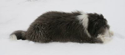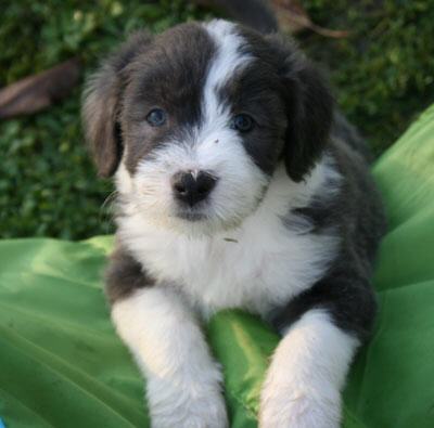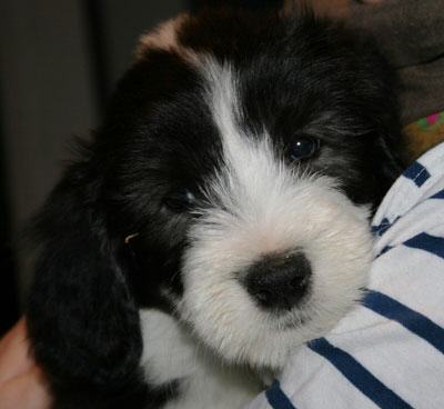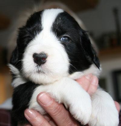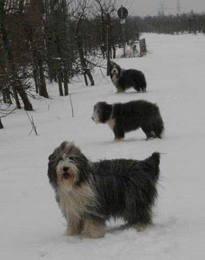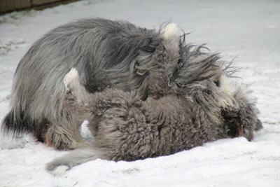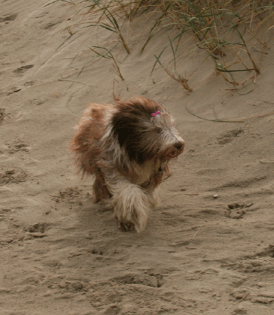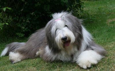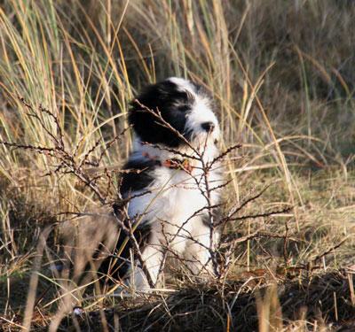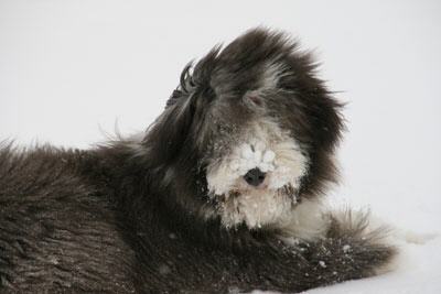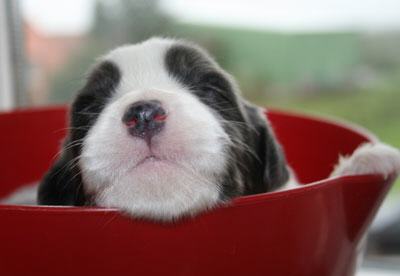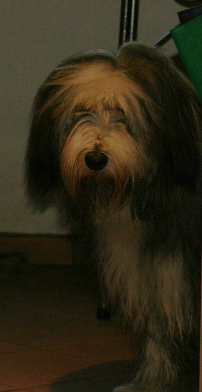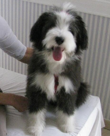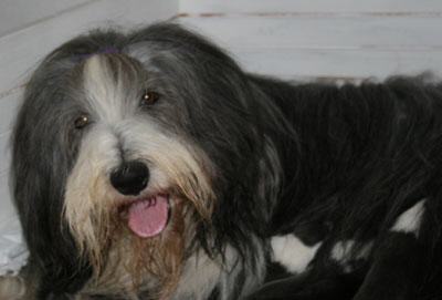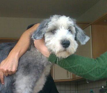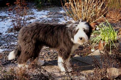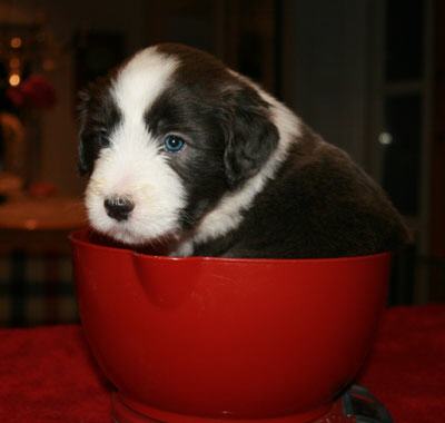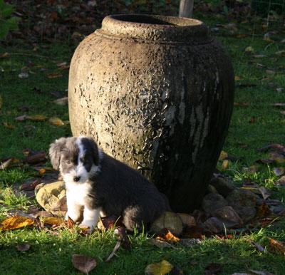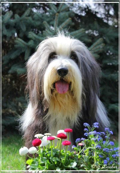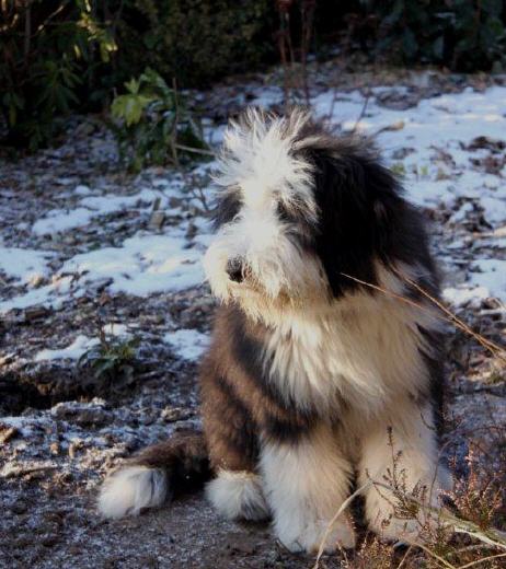 | Twinkle hat sich heute als perfektes Modell gezeigt. Und ich dachte: Geht doch!Vor einigen Jahren kam unsere Bobtail-Mona, ausgerüstet mit schönem Deko-Ideen und wollte unsere kleinen Beardie-Puppies genaus0 hübsch in Szene setzen, wie sie es sonst bei einer Freundin mit Bobtails gemacht hat. Nach langem, schweißtreibendem Versuchen gab sie auf: Beardies sind halt doch anders als Bobtails.