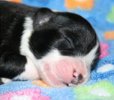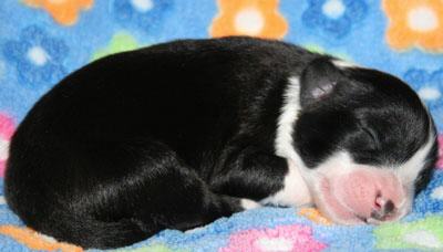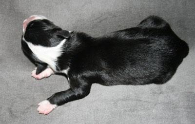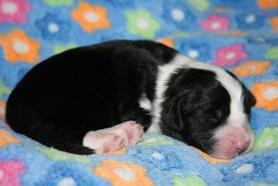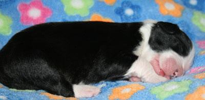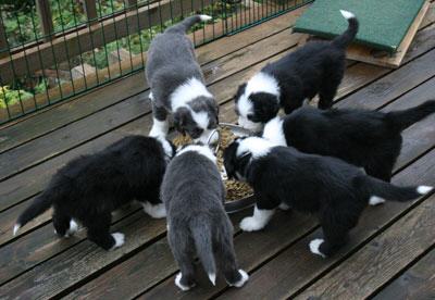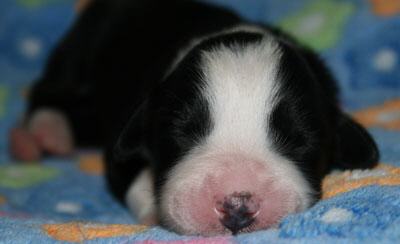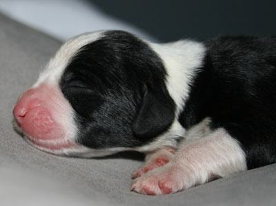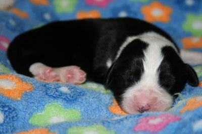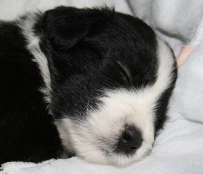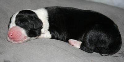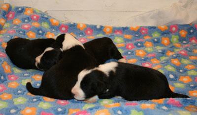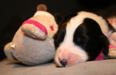 | Nach einer aufregenden Woche mit Tierarztbesuch (impfen, chippen und Check-up) und Zuchtwartbesuch (Überprüfung der Welpen und Fertigmachen der Papiere) sind gestern als erste Aimee (Tinkerbell) und Twice ausgezogen. Pepper und wir konnten beruhigt zu Bett gehen, nachdem wir hörten, dass die beiden Mädels gut im neuen Heim angekommen sind. Zuerst sah das Ställchen ganz leer aus - aber sechs Welpen sind immer noch ein ordenlicher Wurf!