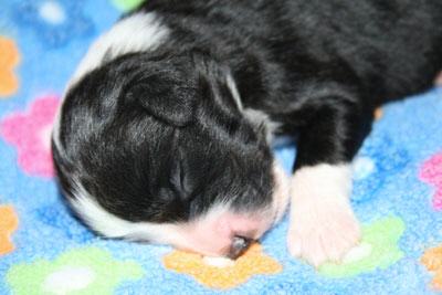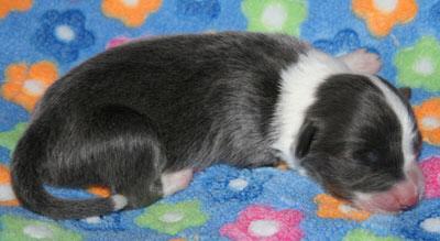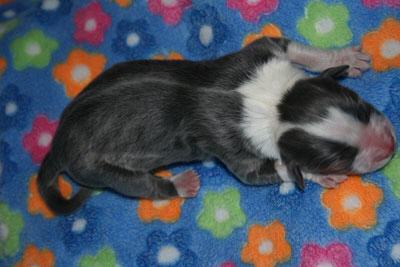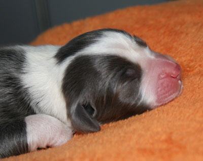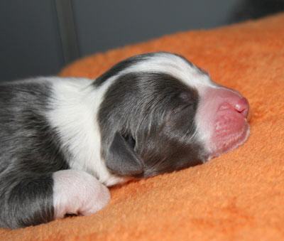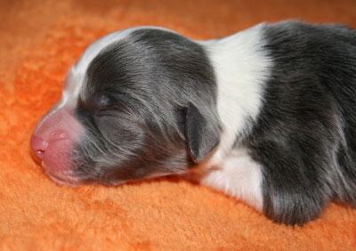 | Nachdem letztens Tatinka, das eine der beiden blauen Mädchen, mein Modell war, war mir heute Twinkle immer wieder vor der Linse. Sie hat gemeinsam mit den anderen die Sonne genossen. Aber, ehrlich gesagt, richtiges Gartenwetter haben wir nicht. Der Boden ist leider sehr feucht. Natürlich kommen die Welpen bei solchen Bedingungen sobald sie müde werden wieder ins Welpenställchen im Wohnzimmer.