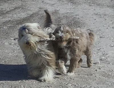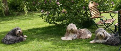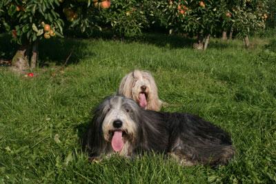 Nelly ist am Freitag FÜNFZEHN geworden! Als Nelly damals in unserem A-Wurf lag, war sie die kleinste, aber wir waren uns damals schon sicher, dass sie einmal ein echter Beardie wird. Ein echter Beardie ist sie geworden, zielmich klein ist sie geblieben, aber ich glaube, heute gilt für sie ein anderer Superlativ:  Ich glaube, Nelly ist der bravste Beardie, den es gibt. Sie zeigt der lustigen Smilla, mit der sie bei Petra und Norbert lebt, immer wieder, wie sich eine brave Beardie-Dame verhält.