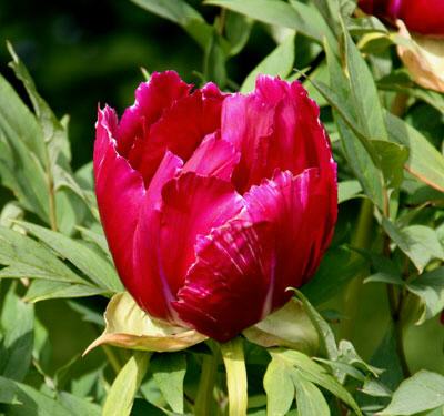 | Die stehen glücklicherweise über dem Giersch! Das sind übrigens die unauffälligeren Exemplare. Die bombastischen rosa-farbenen latsind schon fast verblüht.