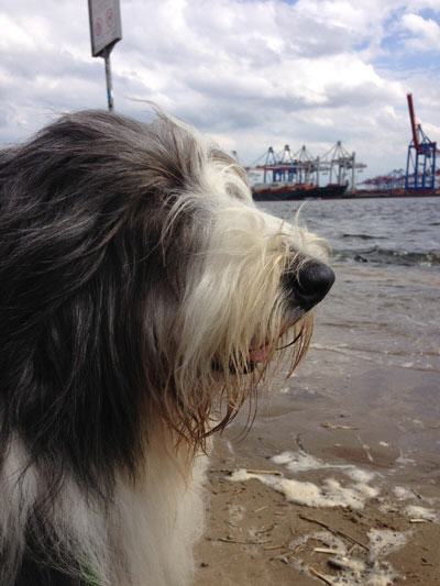 | So sah Jette erst heute gegen Mittag aus, frisch gebadet und windgefönt. Heute früh an der Elbe war es wie im Dänemarkurlaub: Wellengang und ein Wind, der den Kopf freibläst.Wind hatten wir auch noch am Nachmittag, aber dennoch war es ein wunderbarer Gartentag.