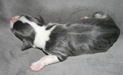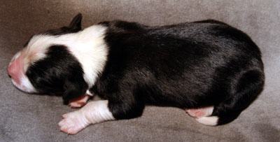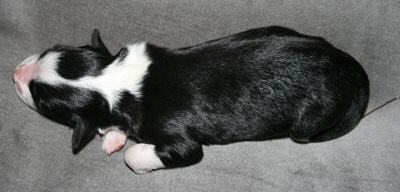 | Wie Sie sehen, wirkt Tickety Boo in der Waagschale leicht besorgt. Aber mein Kleiner, kein Grund zur Sorge! Mit 998gr bist du einfach perfekt!Sie merken aber schon, dass die Welpen langsam das Rouladen-Stadium verlassen und sich in die Rollbratenzeit begeben!