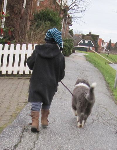 | Beim Weihnachtsspaziergang wollte Emilian auch einen Hund führen und suchte sich fix Jette aus. Die beiden waren immer vorne und Emilian hat sich hervorragend mit Jette unterhalten. Kann man sogar von hinten sehen, oder?
