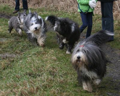 | Hier kommen Fine, Bambam, Quinn und Jette auf mich zu.