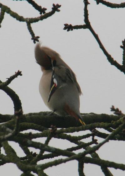 | Herr und Frau Seidenschwanz haben auf dem Rückweg in ihre nördliche Heimat einen Zwischenstopp eingelegt. Hoffentlich haben sie ihre Reisezeit sicher bestimmt und der Frühling folgt ihnen auf ihrer Reise - und hält dabei auch hier Einzug.Ich habe sie während ihrer ausgiebigen Gefiederpflege freundlich eingeladen, in unserem Garten einzuziehen, aber sie haben freundlich abgelehnt. Sie wollen weiterziehen zu ihrem Brutplatz in den Birkenwäldern Nordfinnlands. Schade, aber verständlich.