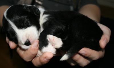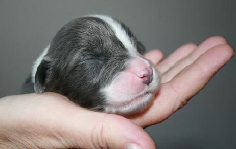 | Heute sind die Welpen umgezogen. Die Welpenkiste war nun wirklich zu klein. Aber im großen Gehege ist es schon noch ein wenig groß und fremd. Einzeleindrücke sehen Sie imWelpenkalender. Ach ja: auf dem Arm ist es auch im neuen Gehege fein!