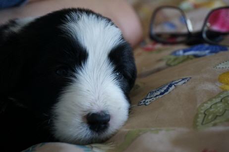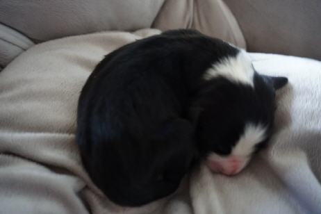 | So groß sind sie jetzt. Eine tolle Zeit, in der die Welpen anfangen miteinander und mit den Menschen zu spielen, aber auch so zart und schmusig sind wie der Kleine hier auf dem Bild.