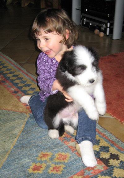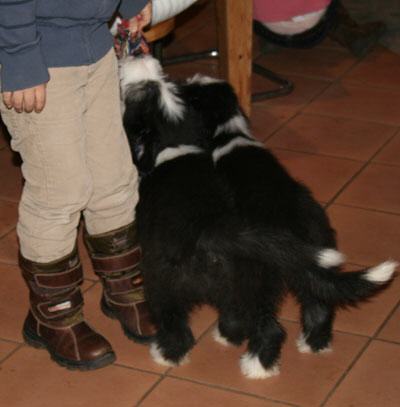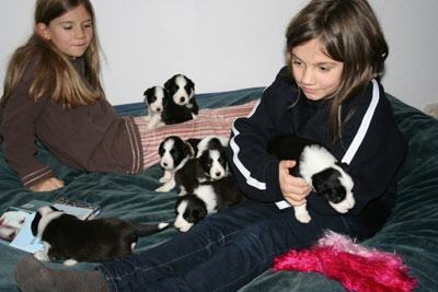 Nach kurzen Anruf purzelten Max aus dem G-Wurf und seine Familie am Abend noch ins Haus. Welche Freude für die Mädchen!