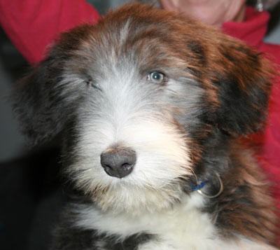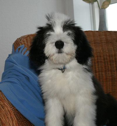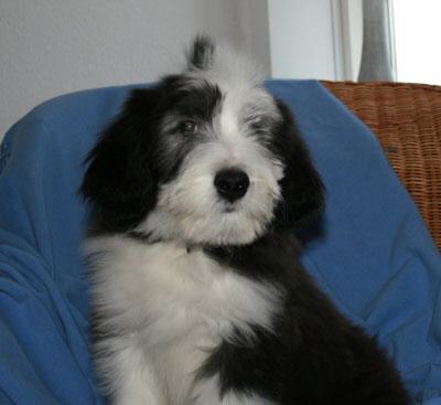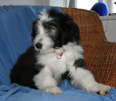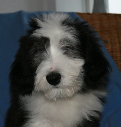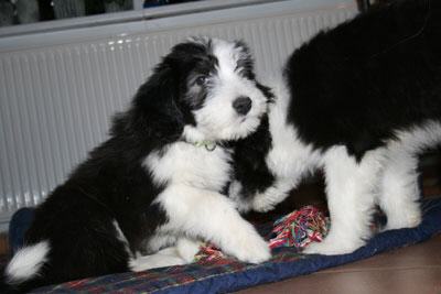 | Links sehen Sie Nick of October und rechts Nero. Die beiden großen Jungs stehen im Wettstreit miteinander: Jeder möchte der schwerste sein. Heute sieht es so aus als hätte Nero gewonnen, abe er ist nur etwas näher an der Linse. Beide wiegen ein gutes Kilogramm. Letzte Woche hieß Nick of October noch Nickelback. Hätte ich mal ein wenig gewartet: Seine neuen Besitzer wissen schon seit langem, dass ihr Hund einmal Oktober heißen soll. Eigentlich wollten sie ja letztens auch nur mal schauen, ob Beardies zu ihnen passen würden, aber diese kleinen Oktoberkinder waren ja dann wohl direkt für sie gemacht. Ich habe also die englische Sprache ein wenig gebogen: "In the nick of time" heißt so etwa in "in allerletzter Sekunde, noch gerade rechtzeitig". Diese Lütten sind ja fast am allerletzten Oktober gekommen und der große Bub in allerletzter Sekunde.