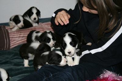 | Sie können sich vorstellen, keine Zeit war, die Homepage akribisch zu pflegen - die Pflege galt in der letzten Woche den Welpen. Mein Mann und ich und liebe Freunde teilten sich in der letzten Woche auf, damit die Glückskäferchen ihre Sonderzuwendung bekamen und auch die letzten Mohikaner des M-Wurfs hier unten im Welpenställchen nicht zu kurz kamen.