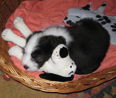 | Dieser Anblick bot sich mir, als ich am Sonntagmorgen nach kurzem Nickerchen in die Kiste blickte. Nicht dass jemand denkt, dass ich gefroren hätte: In den letzten Nächten habe ich bei karibischen Temperaturen schlafen müssen, damit es für die kleinen Welpen warm genug ist. Aber dieser Anblick wärmt zusetzlich noch das Herz.