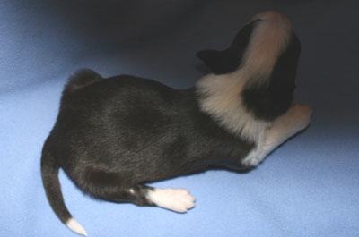 | Neue Einzelvorstellungen. Eine Session haben wir heute Nachmittag gemacht - aber die Welpen sind in echt hübscher als auf den Bilder (schlechtes Licht!), also habe ich es heute Abend noch einmal allein versucht. Das ist schwierig und hat nur bis zum 4. Welpen geklappt. Nell hatte dann schon zu viel Hunger und kam immer wieder auf mich oder die Kamera zu um uns anzuknabbern.