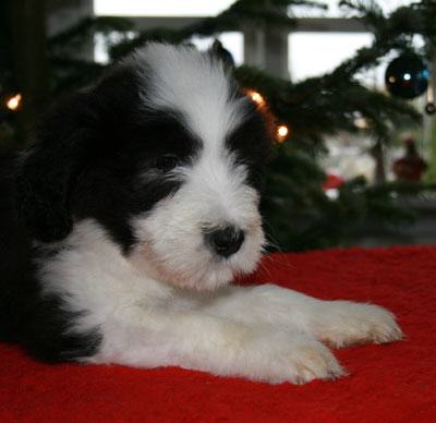 Die ersten sechs ließen sich einigermaßen fotografieren, Beauty und Nick hatten aber keine Lust mehr vor dem Baum zu posieren. Bildtechnisch war meine Idee, den Christbaum als Hintergrund zu verwenden zwar ganz nett, welpentechnisch war sie dumm: ich hätte viele schöne Rückenansichten festhalten können, denn der Baum war natürlich für die Kleinen viel interssanter als wir.