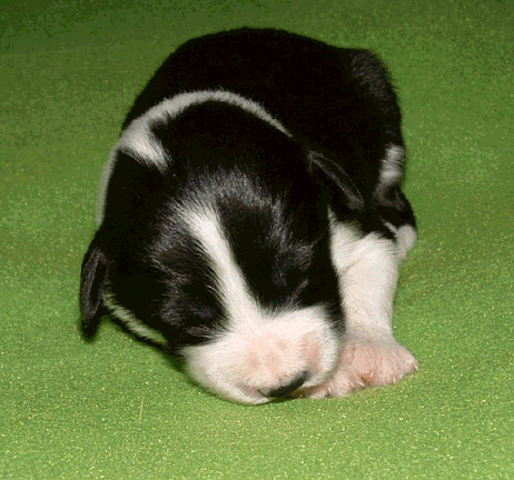 Eigentlich wollte ich die schöne Loyal Lads-Decke zeigen. Aber die Welpen sind noch viel zu klein für den langen Schriftzug - das muss also noch ein Weilchen warten, während hier nur eine Farbstudie "Schwarzer W.welpe auf maigrüner Decke" gezeigt wird.