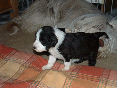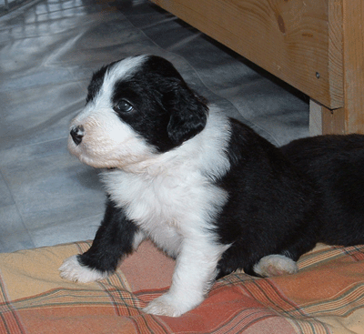 Heute sind die Kleinen in das Welpenställchen umgezogen. Vollkommen problemlos, denn jetzt sind sie einfach nur noch neugierig. Respekt zeigen sie nur, wenn Paula sie anbellt, damit sie nicht ihre Kreise stören.