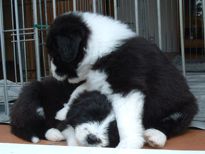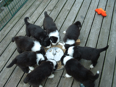 Fünf Wochen sind sie schon alt! Zu diesem Zeitpunkt beginnnen meist zwei Herzen in der Züchterbrust zu schlagen: Für alle bereits versprochenen Hunde ist die Halbzeit "Zuhause" schon überschritten. Unvorstellbar! Und es macht schon im Vorfeld wehmüig, wenn wir an den Abschied denken. Aber meist wird die arbeit zu diesem Zeitpunkt auch so intensiv, dass wir uns auch vorstellen können, den einen oder anderen in absehbarer Zeit in liebe Hände abzugeben.