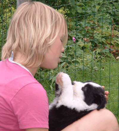 Hier wird zwar sanft geschmust, aber Katie hat Lea auch zum robusten Toben aufgefordert und sich über den Besuch gefreut!