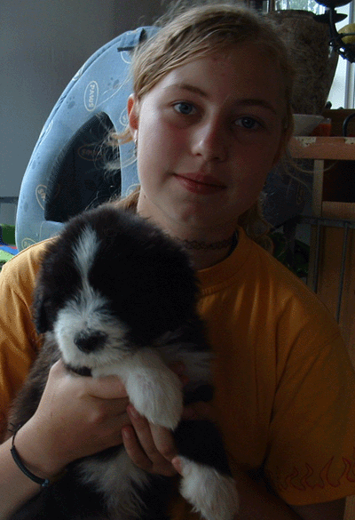Kerry fühlt sich bei Carina wohl - leider ist das Bild, bei dem beide Gesichter zu sehen sind, unscharf.