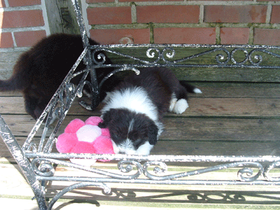 Gestern hat Kerrin sich vorbildlich um die Welpen gekümmert. Kerrins Eltern wollen immer wissen, ob ihre Maus sich auch gut benommen hat. Ich weiß dann gar nicht, was ich antworten soll, weil mich die Frage so überrascht. Kerrin beschäftigt sich so liebevoll und selbstverständlich mit den Welpen, dass die Welpen (und auch ich) sie gar nicht gern wieder gehen lassen. Eine kleine Matratze hätte doch im Ställchen noch PLatz, oder?!