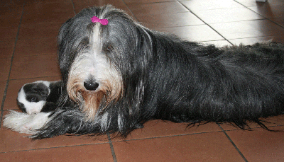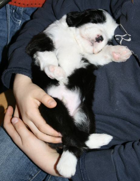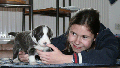 Heute hatten die Welpen viel Besuch: Silja und ihre Familie haben heute das erste Mal richtig mit Lesley spielen können. Lesley hat schon mal ihr neues Frauchen probiert (im wahrsten Sinne des Wortes) und es genossen, die Welt außerhalb der Welpenkiste zu erkunden.