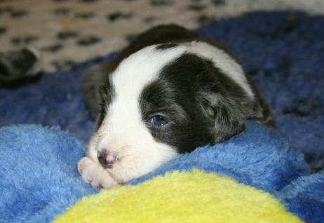 | Das ist Lillifee! Ist sie nicht bezaubernd?Wir sind wieder in de Phase der murmelblauen Augen. Damals, zur Zeit der (ganz) langen Haare, der Barfüße und des selbstgemachten Silberschmucks, hatte ich ein kostbares Kistchen mit Glasperlen. Meine Lieblingsperlen waren kleine, sommerhimmelblaue mit einem etwas dunkleren Kern - genau wie die Welpenaugen direkt nach dem Öffnen bis zum Umfärben. Daher kommt "murmelblau".