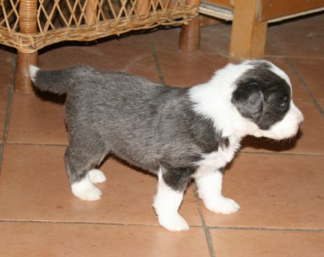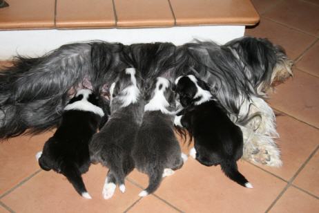 Gut gestärkt von Mamas leckerer Milch und Welpenbreichen kann man sogar schon in der Wohnung auf Erkundungstour gehen. Die ersten Schritte auf den Fliesen hatten Slapstick-Charakter, aber nach ganz kurzer zeit schon hatten sich aslle an den ungewohnten Boden gewöhnt und konnten sich hervorragend darauf bewegen.
