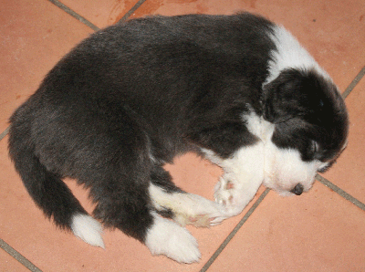 | Heute hatten Lesley und Lotte Besuch. Inzwischen kennen die Kleinen ihre neuen Familien schon und geben ihr Bestes um zu gefallen. Da wedeln die Schwänzchen so schnell, dass man denkt, die könnten auch als Turboantrieb genutzt werden, und da wird schon auf Frauchen zugelaufen, wenn sie Ruft. Ja, und nebenbei wird noch die Katze entdeckt und zum Spiel aufgefordert.Irgendwann hat sich dann Lesley mitten auf dem Wohnzimmerboden zusammengerollt - ein kleines Erholungsschläfchen muss einfach sein!