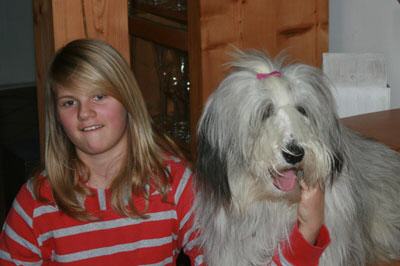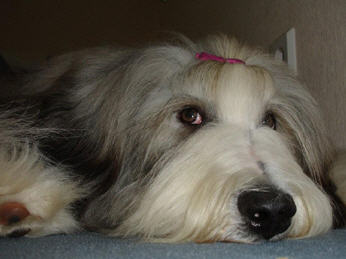 | Eben hatte ich ein wunderschönes Bild von Susanne und Calli aus Fallingbostel in der Mailbox, das Susanne von Frau Tietze geschickt bekam. Schauen Sie sich mal diesen traumhaften Veteranen an! Ich weiß noch, wie Susanne und Wolfgang hier saßen - vor neun Jahren; ein schwarz-weißer Rüde sollte es sein  und sie wollten so gern aussuchen können! Am Ende eines langen Nachmittages hatten sie sich entschieden: für den kleinen, zarten CalliNero!Es standen auch auch noch zwei schwarz-weiße Brummer zur Auswahl!Zeit seines Lebens ist Calli ein Beardie par exellance: eigenständig, selbstbewusst und liebenswert, aber wie viel Liebe er braucht entscheidet er selbst. Und was für ein Glück hat er mit seinen Menschen, die ihn genau SO lieben!