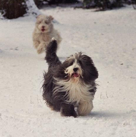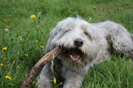 | Heute habe ich kurz Morti und seine Menschen bei einem Beardie-Spaziergang getroffen. Er sieht ist ein schöner, kräftiger Jungrüde, der seiner Mutter India in diesem Alter sehr ähnelt. Auch vom Wesen - er ist sehr fröhlich und kontaktfreudig!Das Bild ist schon etwas älter, aber so sah er auch heute morgen aus. Jedenfalls zu Beginn des Spaziergangs! Sein Frauchen hat mir versprochen, dass er zum Ende der Veranstaltung nicht mehr der der hellste Hund sondern der schmutzigste sein würde. Etwa so: