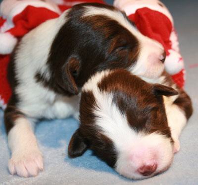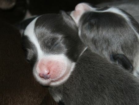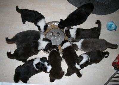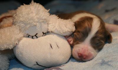 | Heute gibt es wieder Einzelvorstellungen. Die Muckelchen werden immer schöner. Gut, dass es nicht nur zwei sind, die müssten wir dann bestimmt behalten. Aber sechs sind dann doch etwas zu viele.Das Bild zeigt Ihnen ein blaues Traumstündchen von vorgestern. Wenn Sie darüberstreichen, gelangen Sie zum Welpenkalender und den Bildern von heute.