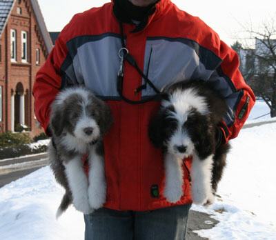 Seit zwei Wochen haben wir nun nicht mehr vier + einen Hund, sondern fünf! Hätte ich es vorher gewusst, würde sie nicht Nell heißen. Der Name ist schön, aber bei unseren Freunden gibt es schon zwei Beardie-Nellies. Sie können sich aber sicherlich vorstellen, dass uns noch viele andere Kosenamen einfallen!