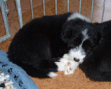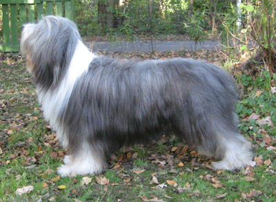 | Gershwin (Gershwin's Blue) hat seinen Namen behalten. Er sang um 4:44 das erste Mal! Gershwin ist heute der älteste eines feinen Beardie-Rudels und siehr immer noch aus wie ein junger Galan.