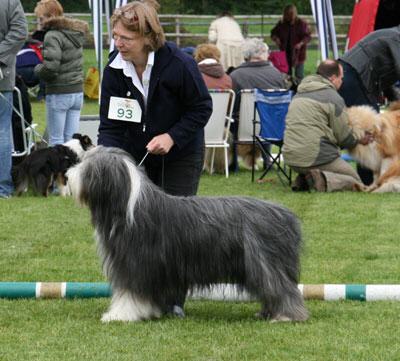 | Eigentlich hatte ich nie an der Qualität dieses Rüden gezweifelt, weiss ich doch dass Amys Kinder mit Moonhill Does It In Style ihrem Vater zur Ehre gereichen.Aber würde dieser erwachsene, selbstbewusste Rüde sich von mir präsentieren lassen? Wir haben uns in den letzten Jahren zwei Mal gesehen - das letzte Mal vor zwei Wochen beim HD-Röntgen. Auch wenn ich mich über das HD A freute, war dieser Tag für Fenwick sicherlich kein Highlight.