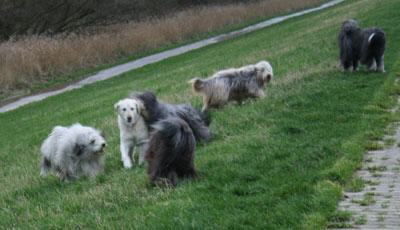 | Heute hat der L-Wurf seinen zweiten Geburtstag. Louis hat schon angerufen und von köstlichem Braten anstelle von Geburtstagskuchen erzählt. Wir waren mit Mama Gem an der Elbe. Leute, man kann sich nicht vorstellen, dass sie bereits Mutter einer erwachsenen Beardie-Bande ist!