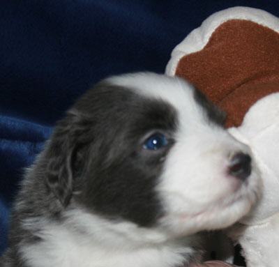 Wer unsere Homepage schon lange besucht, weiß, was die Besonderheit dieser Phase ist: die murmelblauen Augen. Bei einem erwachsenen Hnd würde diese Farbe nicht passen, aber ist sie hier nicht einfach unglaublich schön?