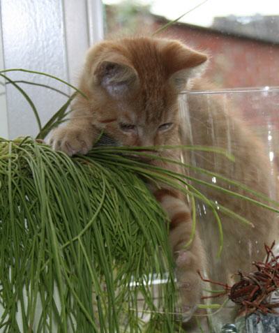 | Dieser kleine Wirbelwind bringt uns zur Zeit zum Lachen. Peperoni ist als sieben-wöchiges Findelkind zu uns gekommen und bleibt noch zwei Wochen bei uns. Da wir zu viel Sorge haben, dass er als erwachsener Kater das Schicksal unseres Tom teilt und auf der Straße bleibt, freuen wir uns jetzt nur übergangsweise an ihm und stählen unsere Herzen in Vorbereitung auf den Abschied.