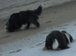 So ging es Paula heute an er Elbe. Vor lauter Lebensfreude und Glück, darüber, dass heute Calli, Ginkgo, Gershwin und Zucchero zu Besuch waren, musste sie sich erst mal in Schneesand wälzen.