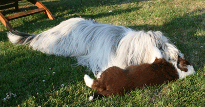 | Wenn solche Fotos entstehen, liegt der Fotograf natürlich auf dem Boden. Und sie enden immer mit einem fixen Überfall: Rauf auf den Fotografen und ordentlich abschlecken!