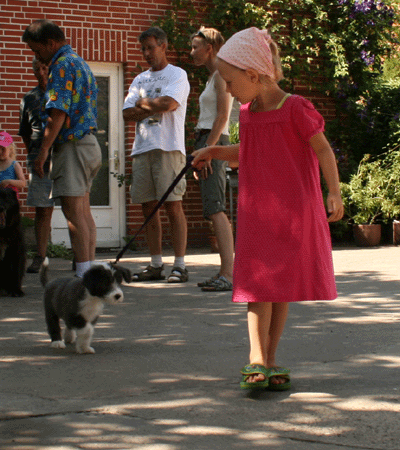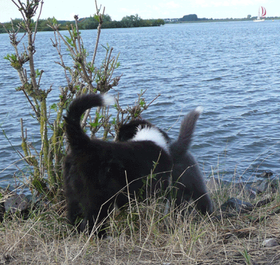 | Für die großen Hunde war der Start in diese Tag gut: das obligatorische frühe Bad in der Elbe bereitet auf einen heißen Tag vor.Die Kleinen haben die Hitze im Haus verdöst, aber am Frühabend brachte eine leichte Brise auch Spiel- und Tobelaune mit.
